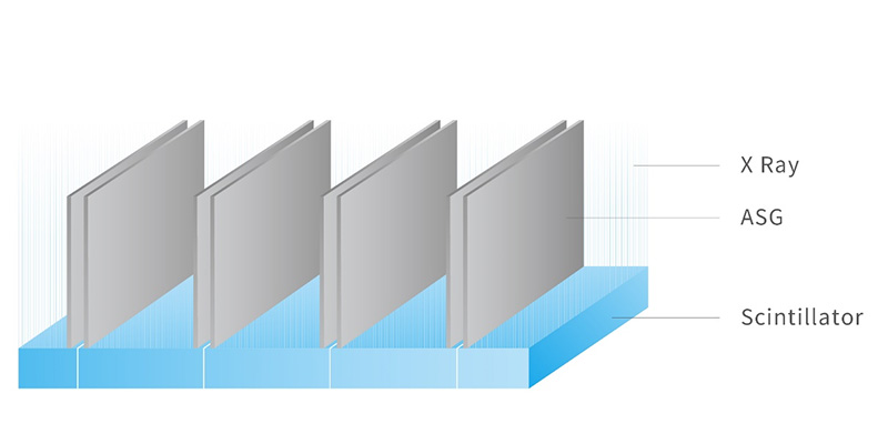 ScintiStar detector integrates ASG, scintillator array, photodiode and ASIC chip into a compact module masterfully. This design helps facilitate a superior signal-to-noise ratio and enable further modularized maintenance as well.