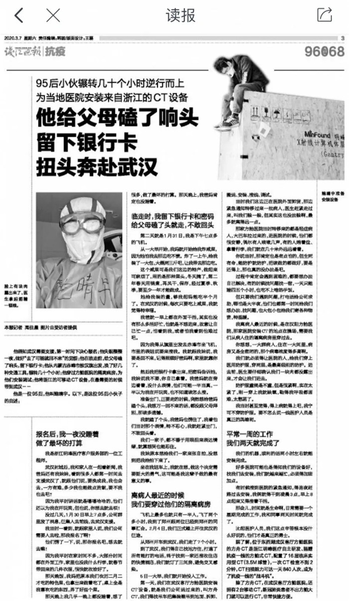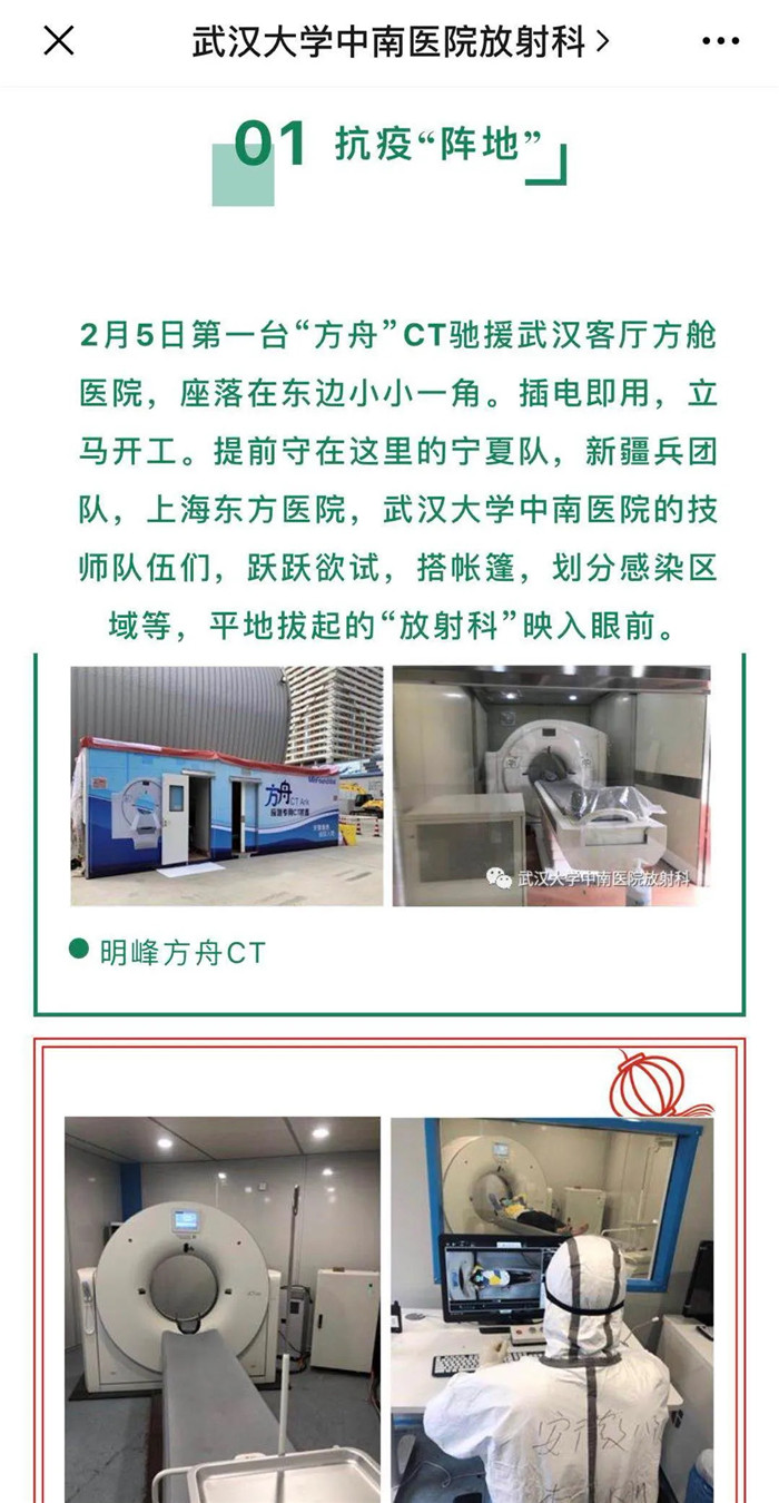 全球首臺(tái)方舟CT已于2020年2月8日在武漢客廳方艙醫(yī)院投入使用。