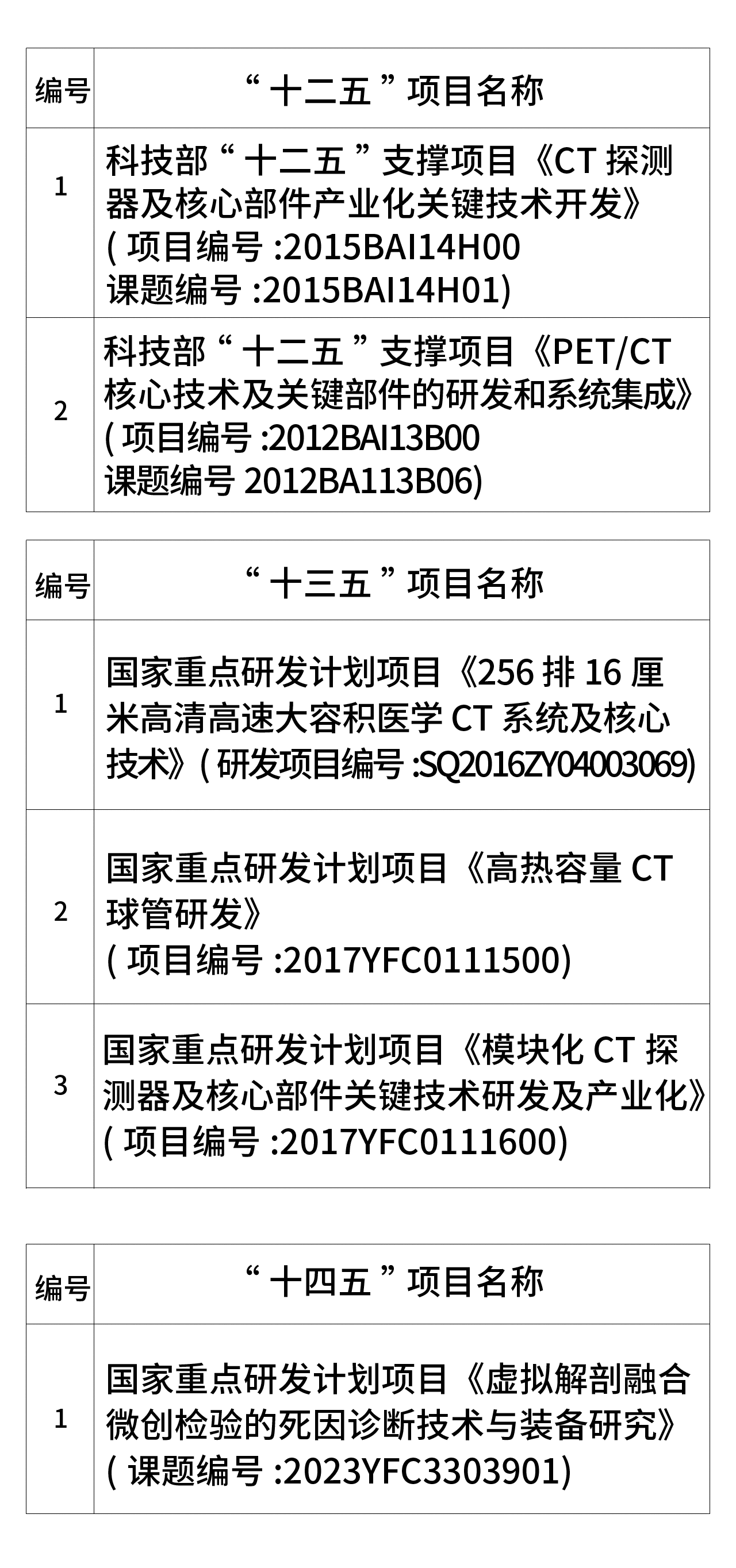 ▲明峰醫(yī)療承接的國(guó)家“十二五”、“十三五”、“十四五”重點(diǎn)研發(fā)項(xiàng)目
