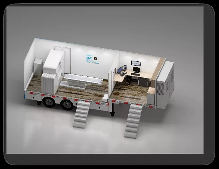 這輛車(chē)配備了車(chē)載低劑量64排128層螺旋CT機(jī),搭載了AI技術(shù),同時(shí)擁有5G影像數(shù)據(jù)快速傳輸技術(shù)等功能。