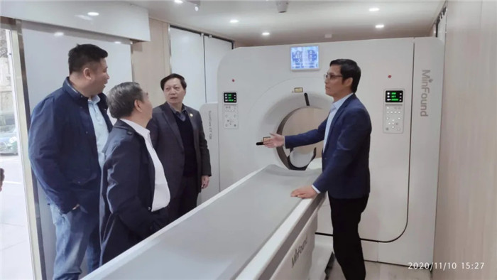 11月10日,陜西省中醫(yī)院影像科齊永平主任,空軍軍醫(yī)大學(xué)西京醫(yī)院石明國(guó)教授(中國(guó)醫(yī)學(xué)裝備協(xié)會(huì)CT工程技術(shù)專(zhuān)業(yè)委員會(huì)主任委員)和余厚軍教授(全軍CT工程技術(shù)委員)等人受邀考察明峰車(chē)載CT,參觀后,大家都對(duì)明峰醫(yī)療的車(chē)載CT給出了高度評(píng)價(jià),同時(shí)對(duì)本次明峰醫(yī)療的服務(wù)基層肺癌篩查活動(dòng)表示贊揚(yáng)和肯定。