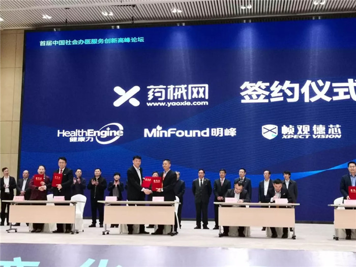 現(xiàn)場,在領導、嘉賓和客戶的見證下,明峰醫(yī)療、央企國宜盛世集團、華為云、順豐物流、廈門國際銀行、健康力、深圳幀觀德芯以及廈門中藥廠,各戰(zhàn)略合作客戶簽約代表分別與藥械網一一簽訂了戰(zhàn)略合作協(xié)議。