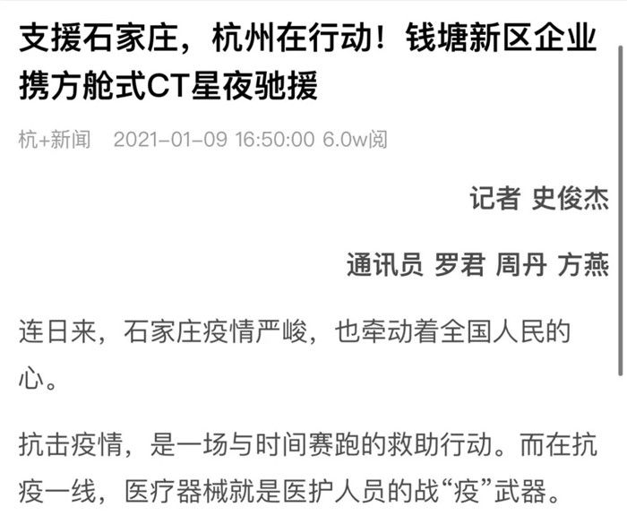 各大媒體報(bào)道,明峰醫(yī)療車載CT馳援河北